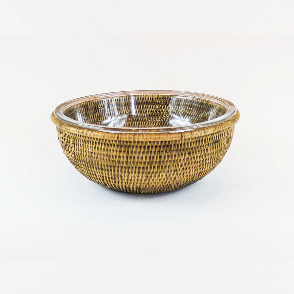 Ref: 3068 - Bowl de vidro 28 cm com suporte em rattan MAYA
