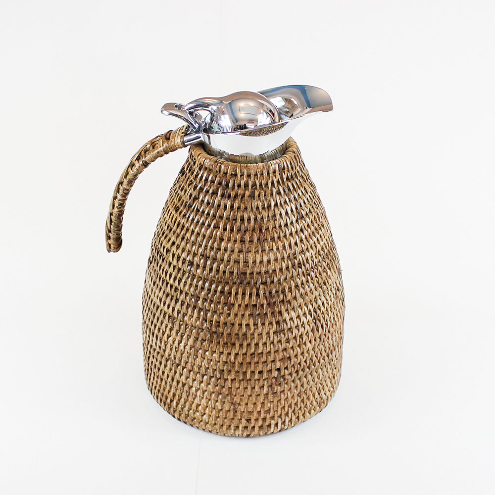 A garrafa térmica em rattan PAYA é fabricada em alumínio e tem revestimento em Rattan. Possui capacidade para 1,5 litros . Confere sofisticação ao servir bebidas quentes ou geladas, no café da manhã, chá da tarde, ou no cafezinho após as refeições